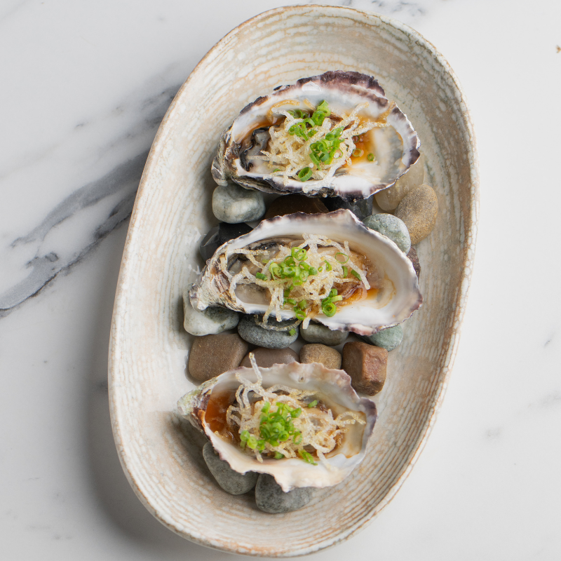 Grilled Oyster, Ponzu, Hennessy VS Cognac, Chive & Garlic.
