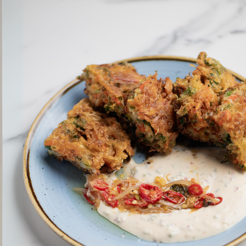 Masala Spice, Paprika Labneh, Desiccated Coconut. (gf)